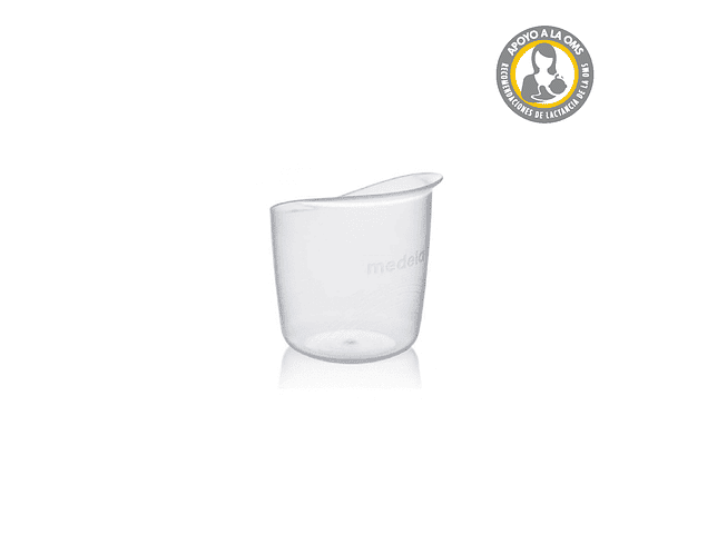 El vaso graduado para bebés es una solución de bajo coste para la alimentación a corto plazo con leche materna, suplementos o medicamentos. El vaso graduado para bebés no contiene bisfenol A.